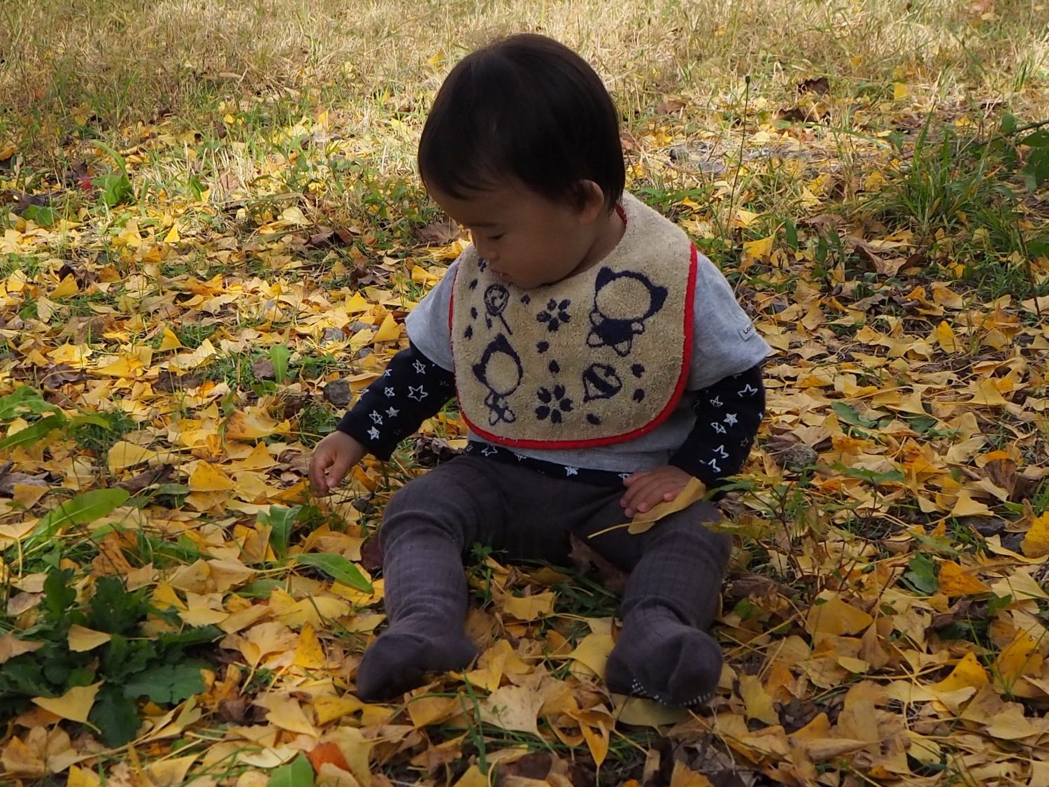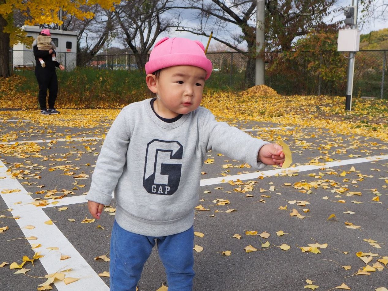散歩に出かけてきれいな色になったイチョウの葉っぱも沢山見つけて、葉っぱの絨毯に座ったり、葉っぱシャワーをしたりして楽しみました♡