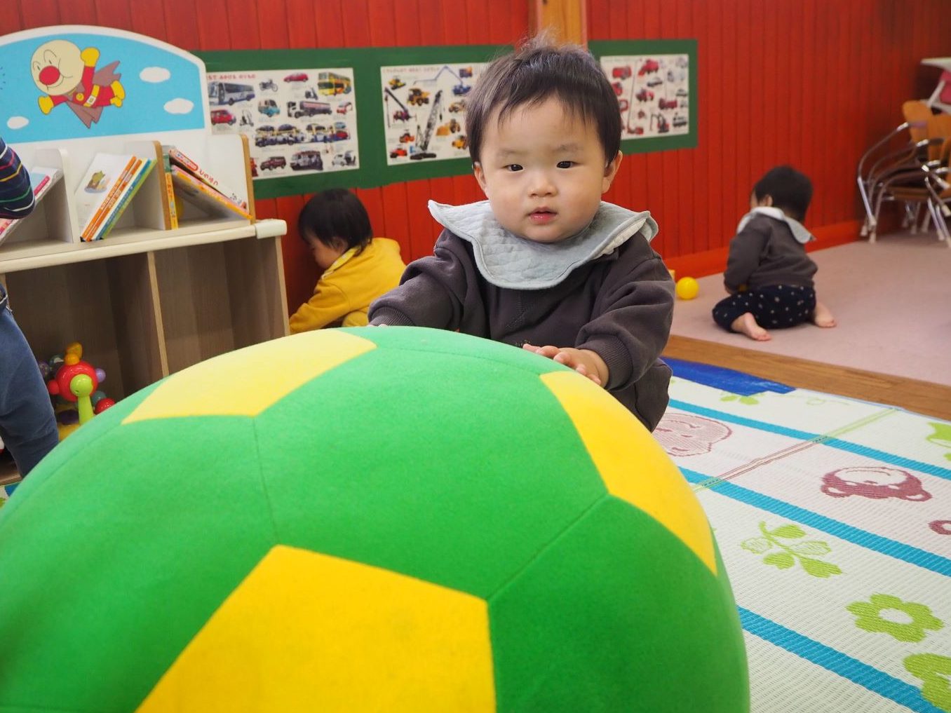 ふわふわバランスボール!!大きなボールを持って立ったり、バランスをとって寝転がったり、座ったりもできたよ😉