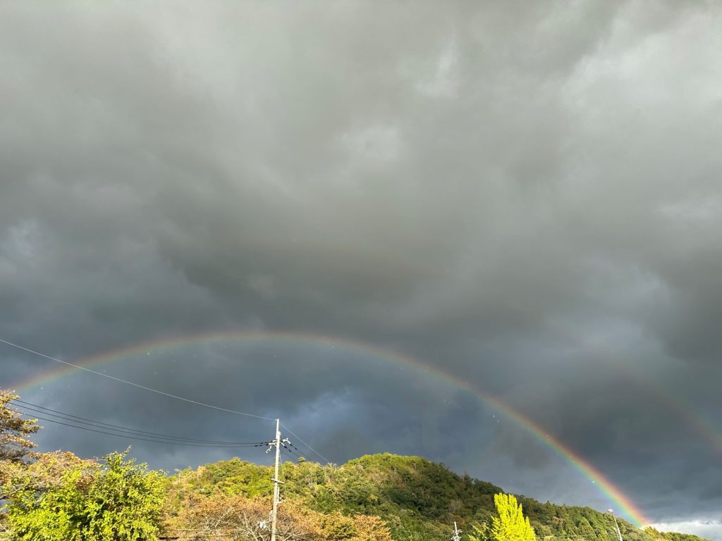 そして夕方には空に大きな虹を発見!!「きれい~」「ふたつある!!」と言いながら眺めている子ども達でした。素敵な虹が見れて、良かったね!