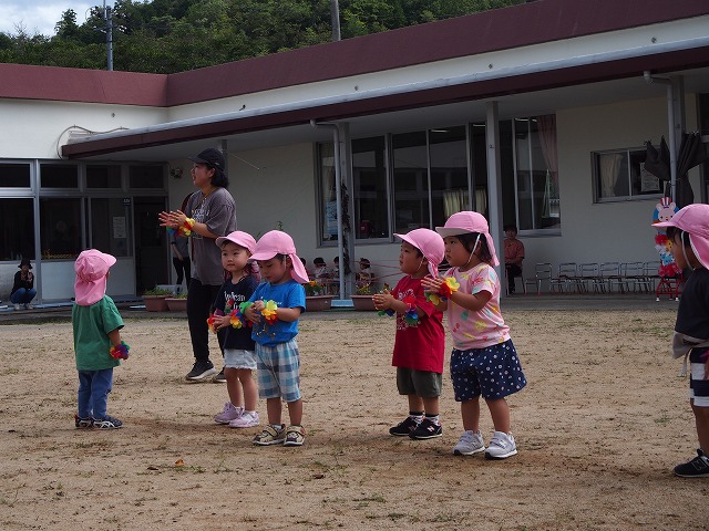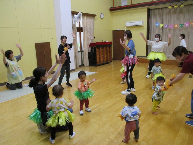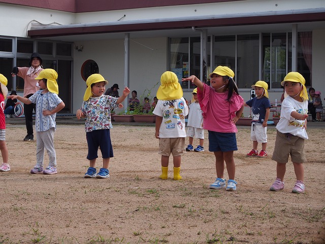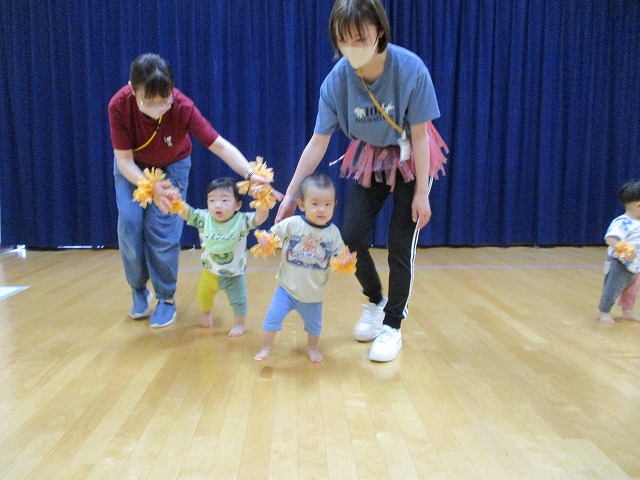 27日(土)のふれあい運動会(2・3歳児)・親子ふれあい遊び(0・1歳児)に向けて、みんなでリハーサルを行いました。