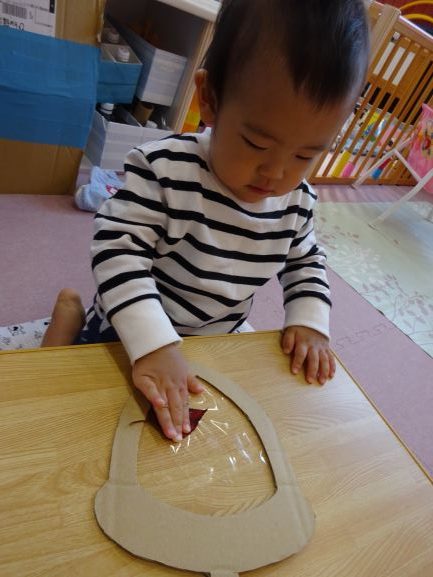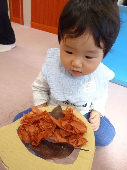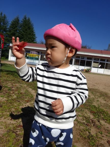 急に寒くなったり、暑かったりと、気温の変化が激しいですが、天気の良い日は戸外に出て、秋の自然を見たり触れたりし、自然物を制作や遊びにも取り入れて遊んでいきたいと思います。