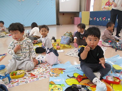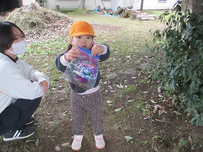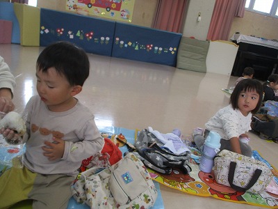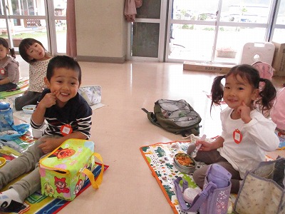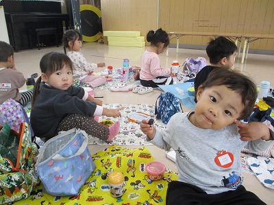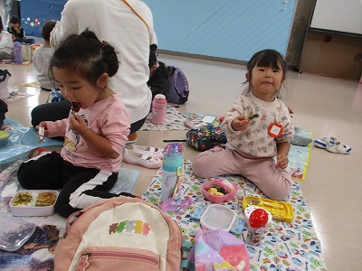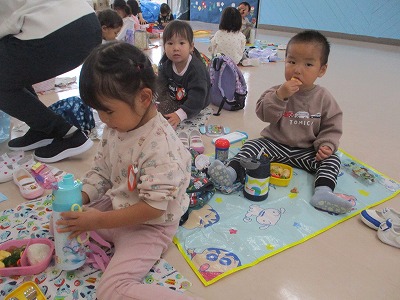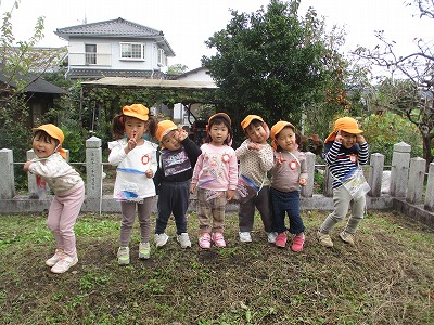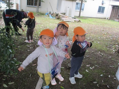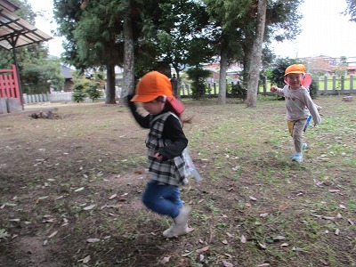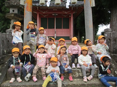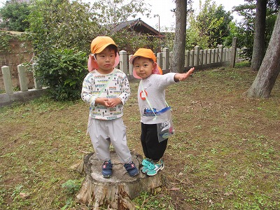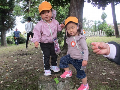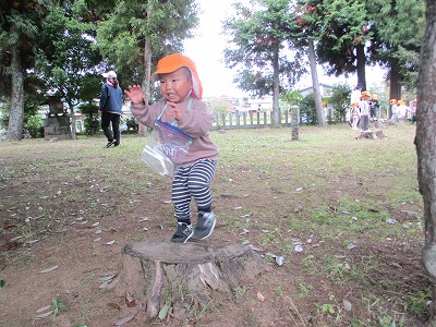 遠足楽しかったね! 2歳児(たかしろ) 2025.10.24 たかしろ保育園 神社に行きました。広い所で駆け回ったり、ドングリを拾ったり、切り株に乗ったりしてとても楽しかったね。 お弁当をパクパクおいしそうに食べていました!すごく嬉しそうでしたよ。ご多用の中作っていただきありがとうございました。