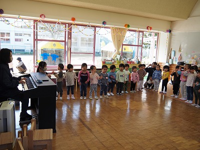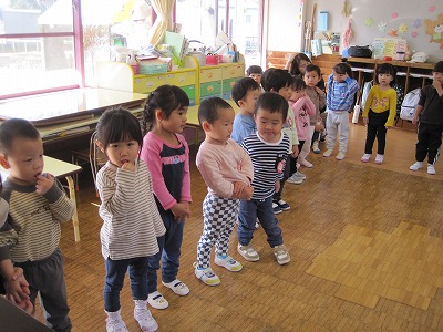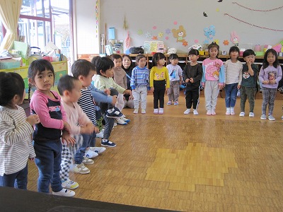 うさぎ組さんといっしょ♬ 2歳児(にしき) 2025.11.07 にしき保育園 今日はうさぎ組さんと一緒に歌を歌いました。 「なんの歌をうたう?」 「とんぼ!」「どんぐり!」 どんぐりころころのうたを歌いました♬ 一緒に歌うといつもより素敵な声になって、楽しい気持ちになるね! また一緒に歌おうね!