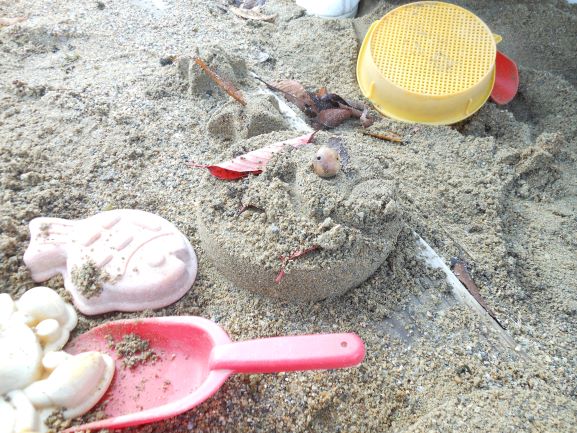 自然物を使った砂遊び、いろいろな感触を楽しむことができます。自然物が豊富なこの時期、五感を使って存分に楽しみたいと思います。