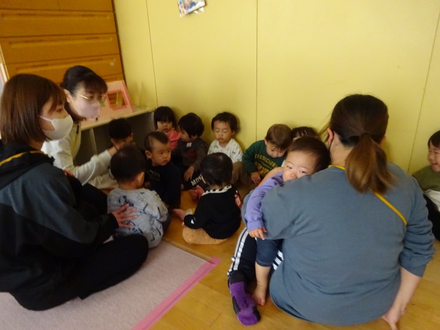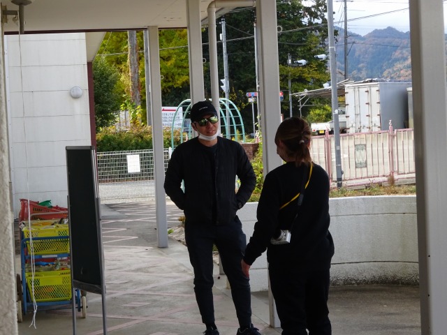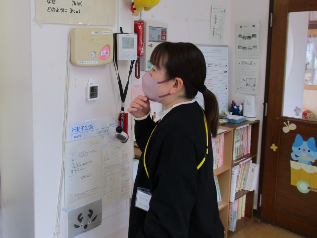 園児たちが安全に避難した後、不安にならないように職員が見守りました。その間に、応援に出た職員が不審者役の方をできるだけ園児から遠ざけ、パトカーで来てくださる警察の方の到着を待ちました。
