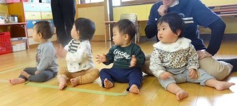 ひよこ組の部屋で遊ぶのとはまた違って、他のクラスの歌や、楽器遊びが見られて楽しかったね!どのクラスへお客さんになって行っても、喜んでもらったり、優しく声をかけてもらったりして、ひよこ組のみんなもとても嬉しそうでした。大きくなると、いろいろな事ができるようになるんだね!みんなも、お兄さんお姉さんみたいに、いろいろな経験をしていきたいね!そして、少しずつ、異年齢の関わりや遊ぶ機会がもてるようにしていきたいと思います。