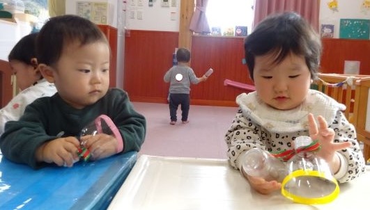 りす組のみんなが、とても楽しそうにマラカスを振っていたので、ひよこ組のみんなもやってみたくなりました。
