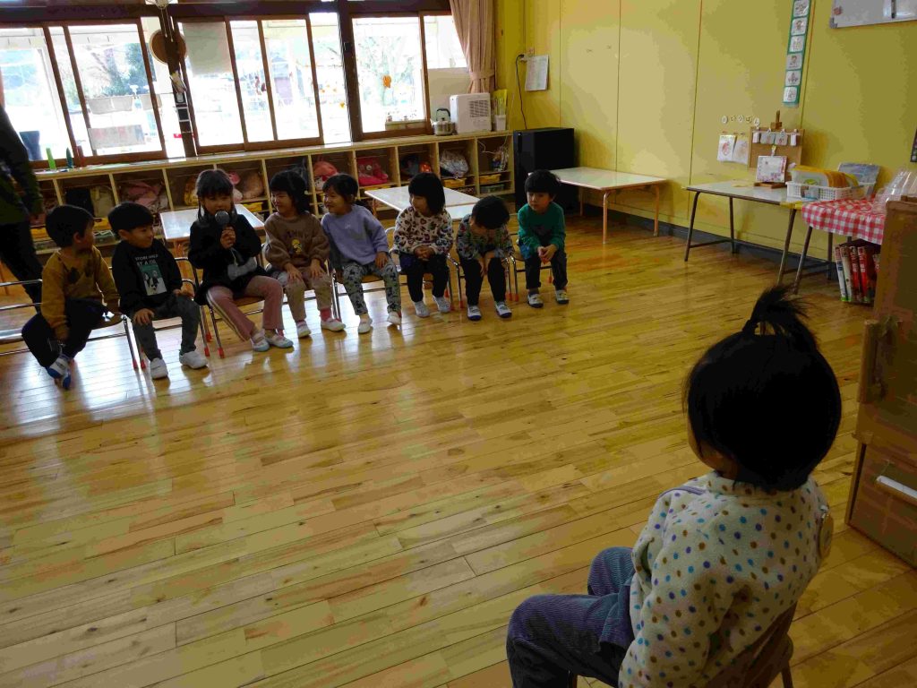 そして、待ちに待っていた新しいお友達がきました。朝の会では、マイクを持ってみんなの前に立ち、「○○です!よろしくお願いします。」と自己紹介をするお友達に続いて、みんなも自己紹介です。お友達を真似て、「○○です。よろしくお願いします。」と話をする子もいました。
