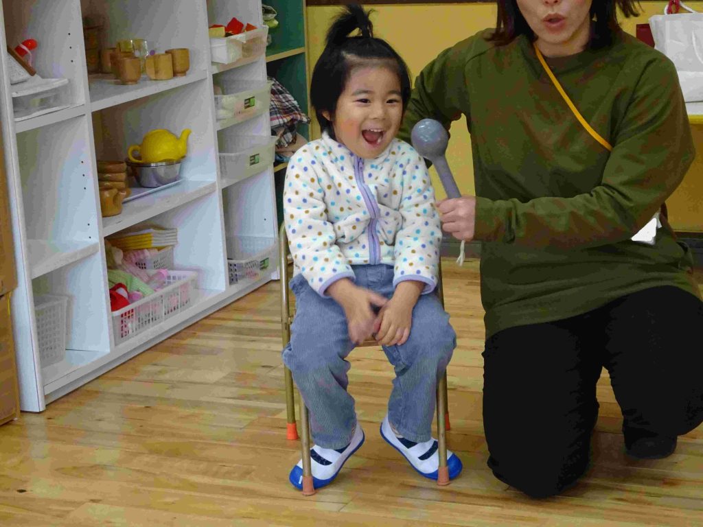 その後は、「好きな遊びはなんですか?」と質問をしました。「トミカが好き!」「救急車!」とお友達が言うと、「一緒!」とトミカ好きのみんなが揃って手を挙げていました。あまりの多さに、お友達も嬉しくなって、この表情です!!