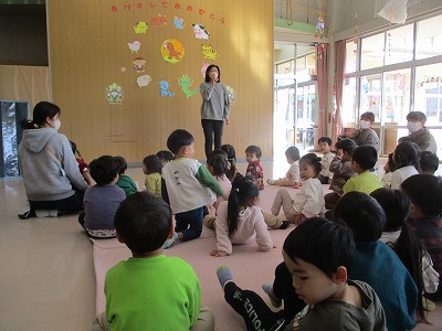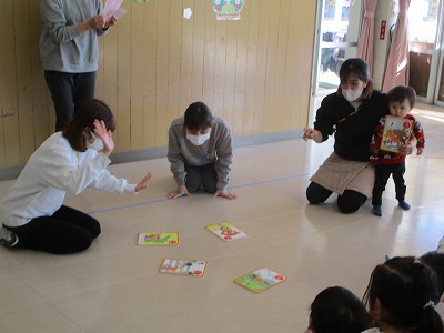 「干支のはじまり」という絵本を見ました。今年は午年で、自分は何年なのかということも聞きました。