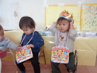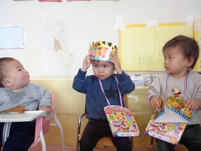 1月の誕生会をしました。 0歳児(たかしろ) 2026.01.23 たかしろ保育園 みんなにお祝いしてもらって嬉しそう♪ Wピースでご機嫌さんだね♪ あれあれ、みんな冠が気になるみたい。 ひよこ組の4人のお友達もみんなにお祝いしてもらってよかったね。小さなお友達も手をたたいて嬉しそうでした。 お誕生日おめでとう!
