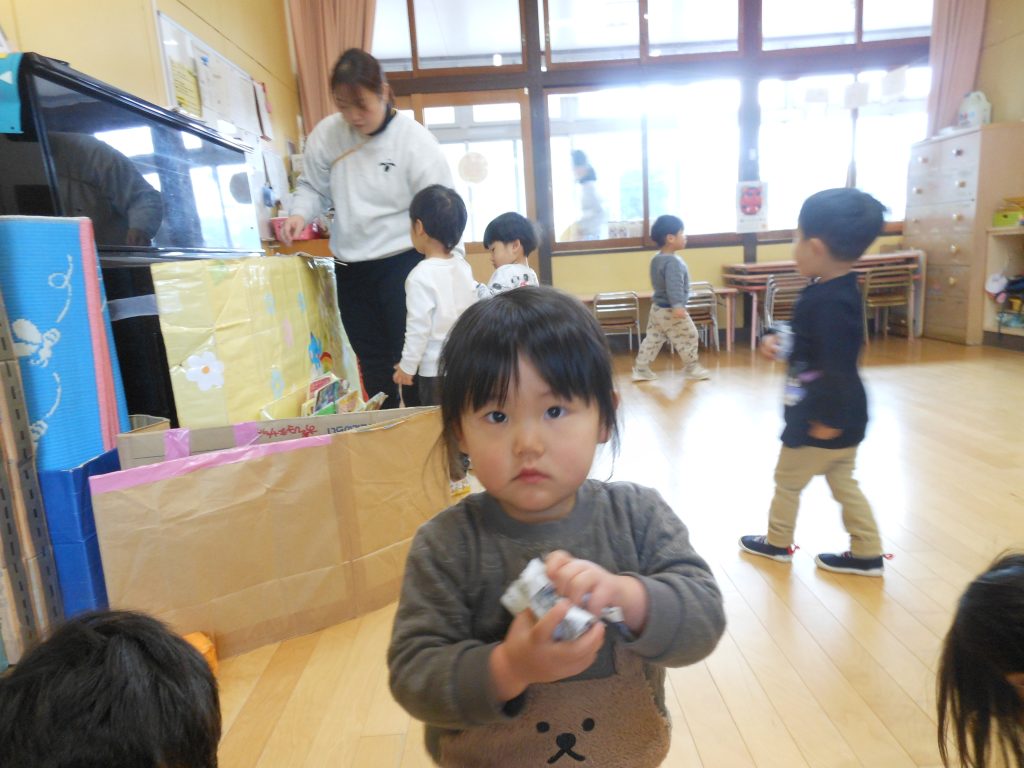 お部屋で遊んだ後は園長先生に鬼を追い払ったよと報告にいき、その後りす組ひよこ組にもお邪魔しました。