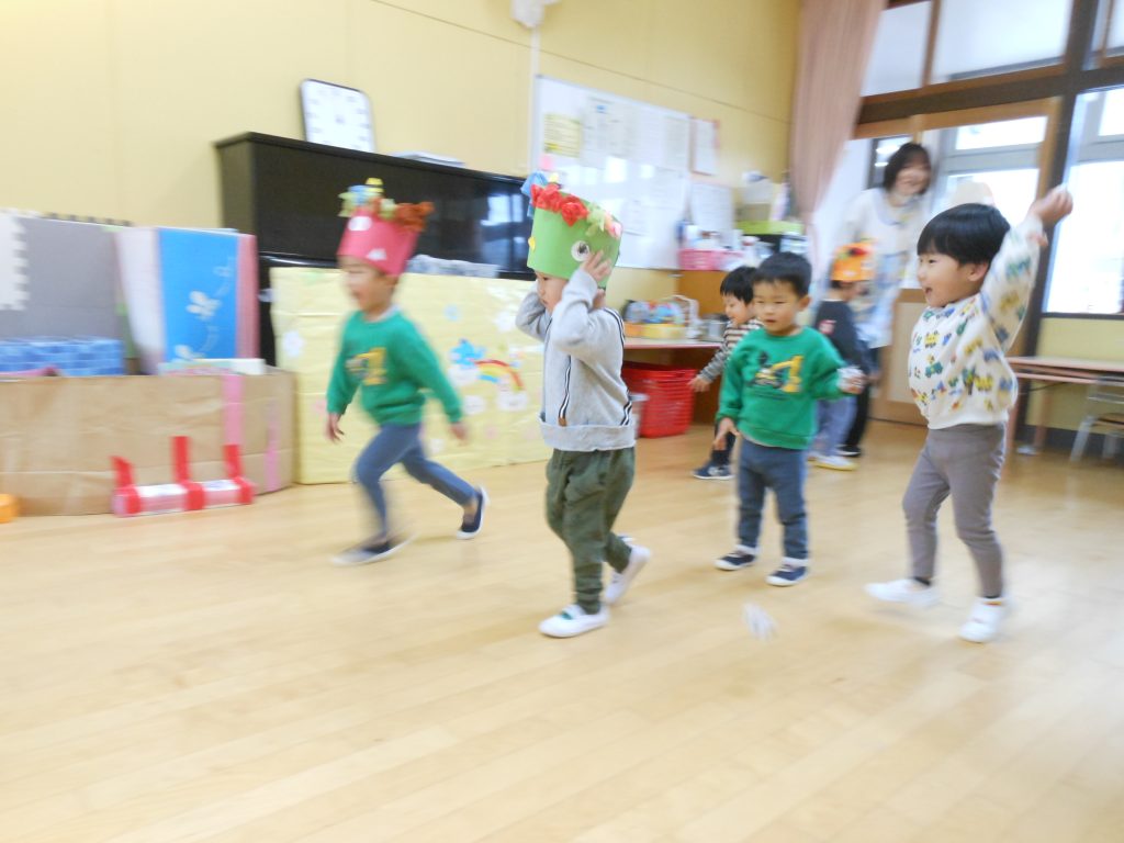 一人一人お腹の中におにがいるよ!と話をして、2グループに分かれて交代で鬼になりました。