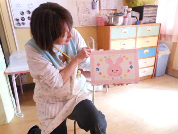 うさぎ組では、「でるでるえほん」というお話をしてもらいました。