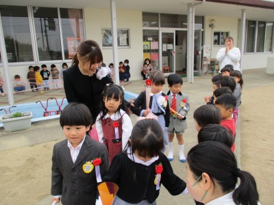 30分ほどの式を終え、保育室に戻る前に、0~2歳児のお友達が、花道を作ってお祝いしてくれました。