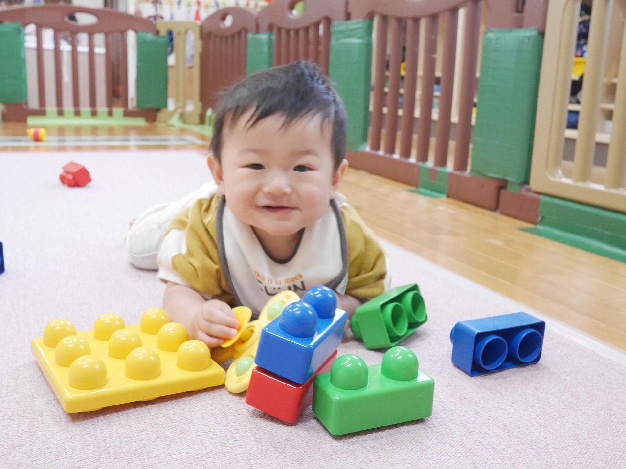 0歳児(城東)入園して1週間がたちました。初めての保育園で緊張もあったと思いますが、少しずつ園の雰囲気にも慣れ、ニコニコと柔らかい表情を見せてくれるようになりました♪