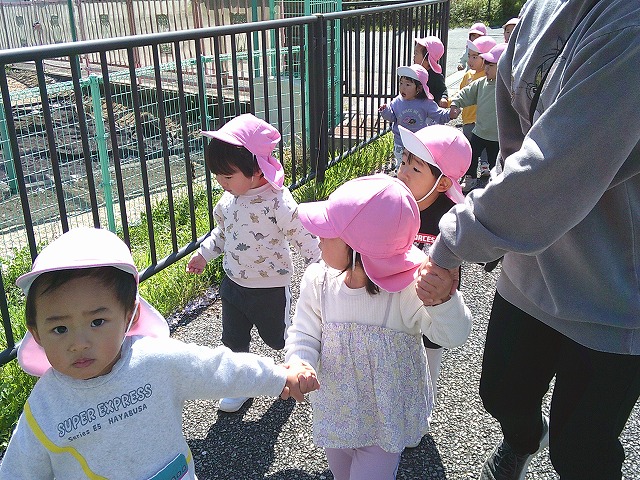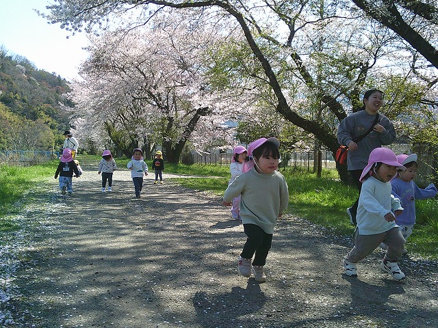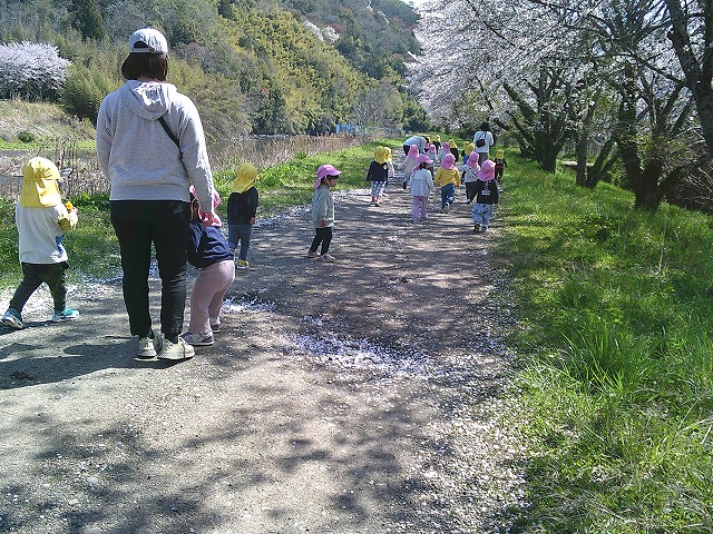 先週、桜がきれいだったので、きりん組さんと一緒に散歩へ出かけました。