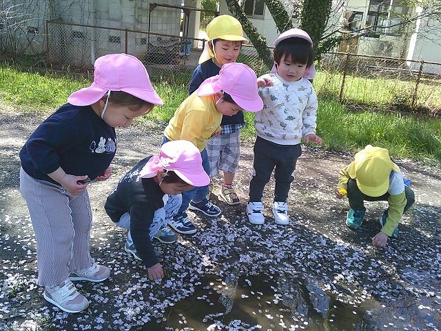 花びらを一つずつ丁寧に拾い集めて大事に手に持っている姿もあり、いろんな春の楽しみ方がありました。