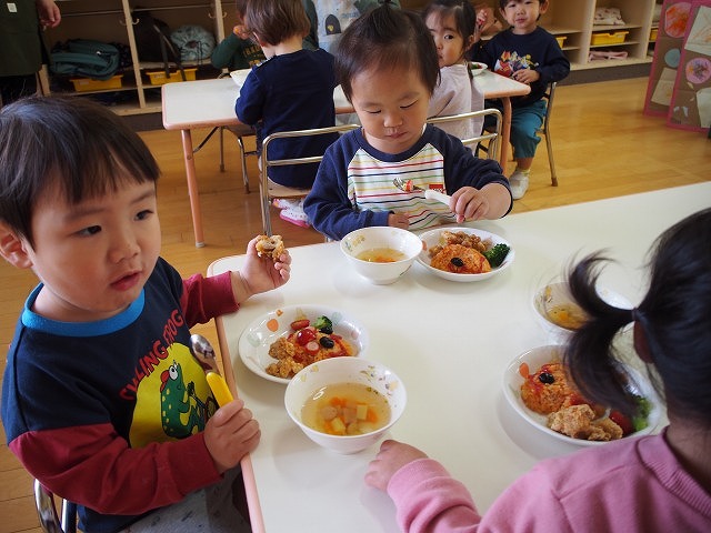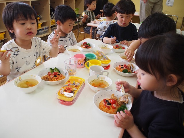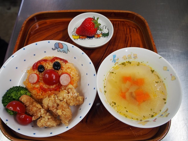 給食は、アンパンマンライス!!みんな大喜びで食べていたよ。